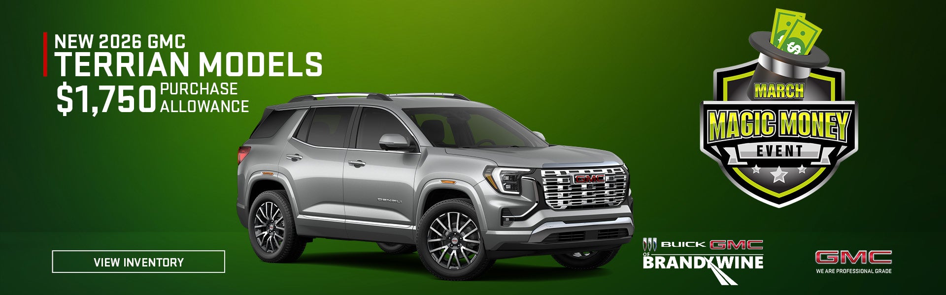 NEW 2026 GMC TERRIAN MODELS $1,750 PURCHASE ALLOWANCE $1,750 purchase allowance available with approved credit on select models. Not all buyers will qualify. Offer expires 03/31/26. See dealer for details.