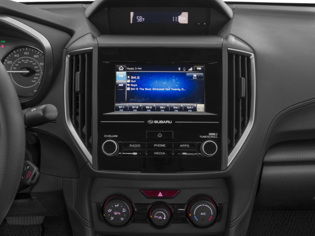 - Radio: Subaru Starlink 6.5" Multimedia System -inc: AM/FM stereo, multi touch gesture high resolution 6.5" LCD display screen, Bluetooth® audio streaming connectivity, Bluetooth® hands-free phone connectivity, iPod control capability, rear vision camera, smartphone integration, AHA, Android Auto, CarPlay, Pandora, USB port, 3.5mm auxiliary input jack, 6 speakers and off delay operation StarLink enrollment cannot be applicable to Fleet Management Companies (FMCs) or to Commercial fleet accounts at this time.