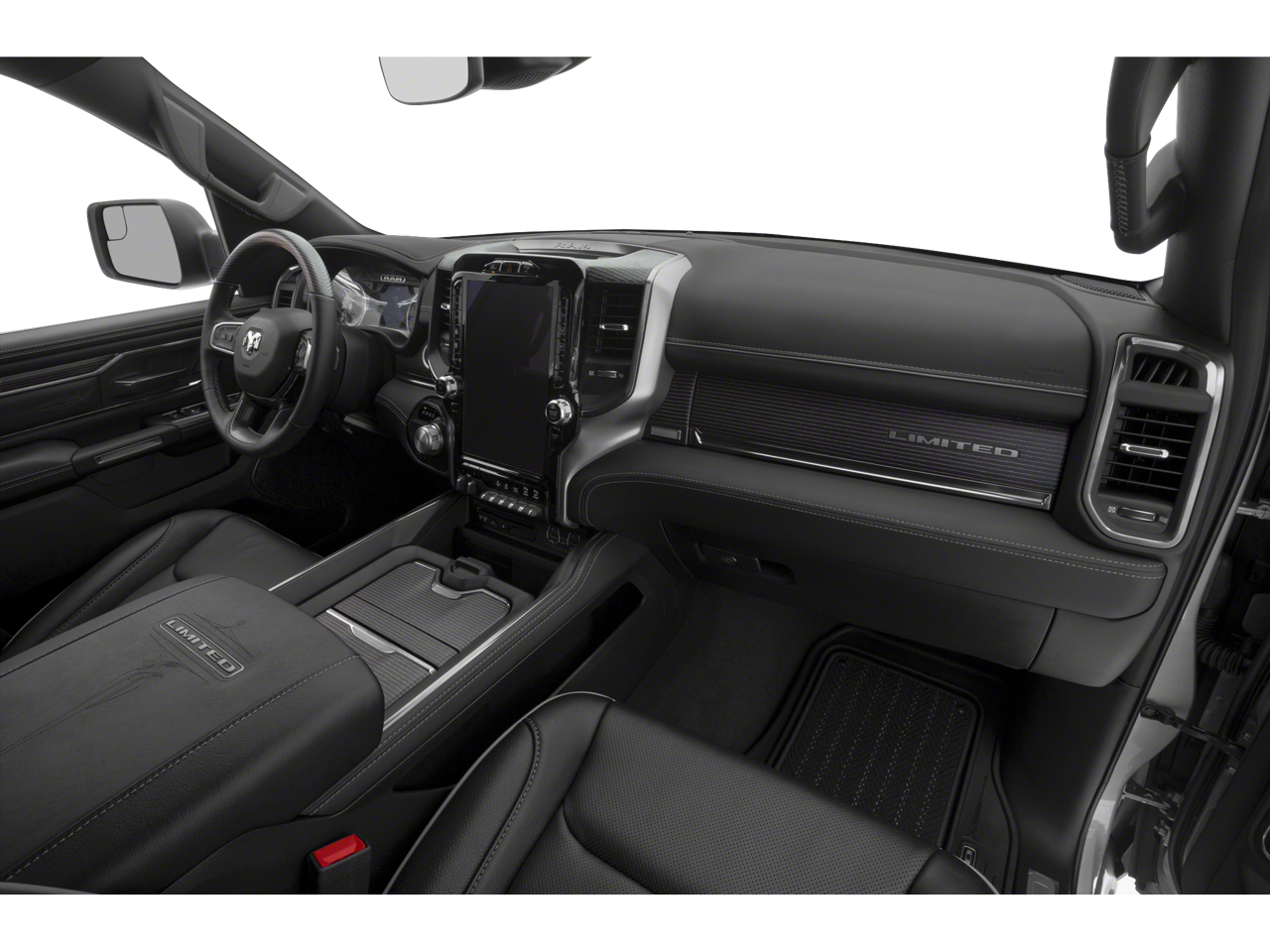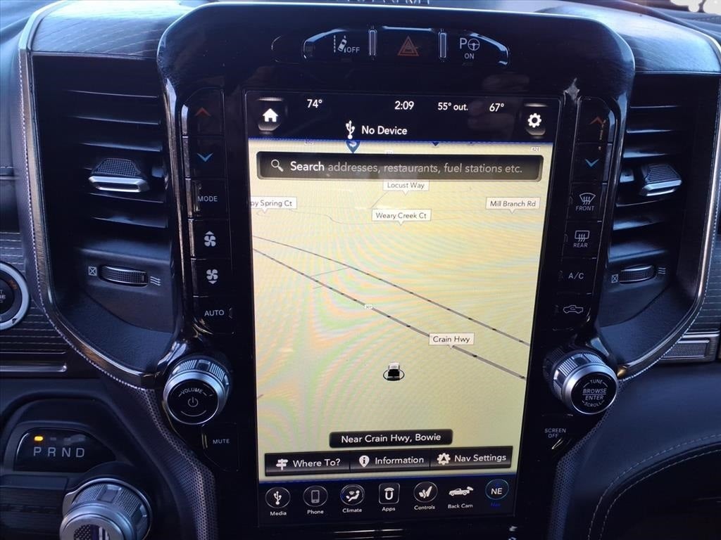 1-Yr SiriusXM Guardian Trial, 10 Speakers, 12 Touchscreen Display, 3.21 Rear Axle Ratio, 4-Wheel Disc Brakes, 48V Belt Starter Generator, ABS brakes, Adaptive Cruise Control w/Stop & Go, Adjustable pedals, Advanced Brake Assist, Air Conditioning, Alloy wheels, AM/FM radio: SiriusXM with 360L, Apple CarPlay, Apple CarPlay/Android Auto, Audio memory, Auto High-beam Headlights, Auto-dimming door mirrors, Auto-dimming Rear-View mirror, Auto-leveling suspension, Automatic temperature control, Bed-Liner / Truck Bed Mat / Cargo Liner, Below Market Value, Blind Spot Warning System / BSM / BSW / BLIS, Bluetooth® Hands Free Phone System, Bodyside moldings, Brake assist, Bumpers: chrome, Check out this 2019 Ram 1500 in Diamond Black Crystal Pearlcoat with Black Leather, Clean Carfax!, Compass, Delay-off headlights, Disassociated Touchscreen Display, Dome Dual LED Reading Lamp, Driver door bin, Driver vanity mirror, Dual front impact airbags, Dual front side impact airbags, Dual-Pane Panoramic Sunroof, Electronic Stability Control, Emergency communication system: SiriusXM Guardian, Front anti-roll bar, Front Bucket Seats, Front Center Armrest w/Storage, Front dual zone A/C, Front fog lights, Front reading lights, Front wheel independent suspension, Full Speed Forward Collision Warning Plus, Fully automatic headlights, Garage door transmitter, Genuine wood console insert, Genuine wood dashboard insert, Genuine wood door panel insert, Google Android Auto, GPS Antenna Input, GPS Navigation, harman/kardon 19 Speaker Premium Sound, HD Radio, Heated door mirrors, Heated front seats, Heated rear seats, Heated Seats, Heated steering wheel, Illuminated entry, Integrated Center Stack Radio, Lane Departure Warning / LDW / LDA, Lane Keep Assist, Lane Keep Assist / LKA, Leather steering wheel, LED Dome/Reading Lamp, Limited Level 1 Equipment Group, Low tire pressure warning, Memory seat, Navigation / Maps / GPS / Nav, Navigation System, New Tires, No Accidents!, No Money Down / $0 Down, No Satellite Coverage w/HI/AK/PR/VI/GU, Occupant sensing airbag, Outside temperature display, Overhead airbag, Overhead console, Panic alarm, Parallel & Perp Park Assist w/Stop, ParkView Rear Back-Up Camera, Passenger door bin, Passenger vanity mirror, Pedal memory, Power Chrome Trailer Tow Mirrors, Power door mirrors, Power driver seat, Power passenger seat, Power steering, Power windows, Premium Leather Trimmed Bucket Seats, Push Button Start!, Quick Order Package 25M Limited, Radio data system, Radio: Uconnect 12 w/Navigation, Rain sensing wipers, Rear anti-roll bar, Rear seat center armrest, Rear step bumper, Rear window defroster, Rear-View Back up Camera, Remote CD player, Remote Engine Start!, Remote keyless entry, Security system, SiriusXM Satellite Radio, SiriusXM Traffic Plus, SiriusXM Travel Link, SiriusXM w/360L, Speed control, Split folding rear seat, Steering wheel mounted audio controls, Tachometer, Telescoping steering wheel, Tilt steering wheel, Touch Screen!, Traction control, Trailer Brake Control, Trailer Tow Group, Trailer Tow Mirrors, Trip computer, Turn signal indicator mirrors, USB Host Flip, V8 Engine - All the Power!, Variably intermittent wipers, Ventilated front seats, Ventilated Rear Seats, Voltmeter, Wheels: 20 x 9 Polished w/Inserts, Work Truck.