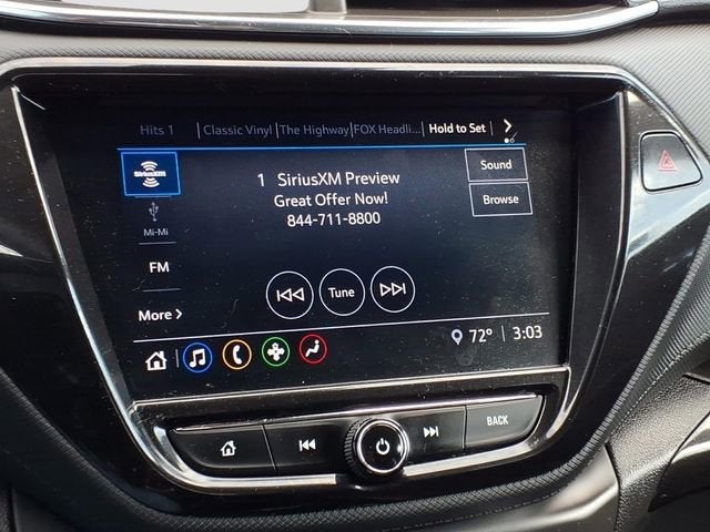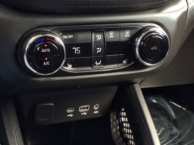 1 Type-A & 1 Type-C USB Charging-Only Ports, 120-Volt Power Outlet, 2-Way Power Driver Lumbar Seat Adjuster, 4-Way Manual Front Passenger Seat Adjuster, 4-Wheel Disc Brakes, 5.45 Axle Ratio, 6 Speakers, 6-Speaker Audio System Feature, 8-Way Power Driver Seat Adjuster, 8 Diagonal Color Touchscreen Display, ABS brakes, Air Conditioning, Alloy wheels, AM/FM radio, Apple CarPlay/Android Auto, Auto High-beam Headlights, Brake assist, Bumpers: body-color, Cabin Humidity Sensor, Cloth Seat Trim, Compass, Convenience Package, Delay-off headlights, Driver & Front Passenger Illuminated Vanity Mirrors, Driver Confidence Package, Driver door bin, Driver vanity mirror, Dual front impact airbags, Dual front side impact airbags, Electronic Stability Control, Emergency communication system: OnStar and Chevrolet connected services capable, Exterior Parking Camera Rear, Flat-Folding Front Passenger Seatback, Front anti-roll bar, Front Bucket Seats, Front Center Armrest, Front fog lights, Front License Plate Bracket, Front reading lights, Front wheel independent suspension, Fully automatic headlights, Heated door mirrors, Heated Driver & Front Passenger Seats, Heated front seats, Illuminated entry, Inside Rear-View Auto-Dimming Mirror, Knee airbag, Lane Change Alert w/Side Blind Zone Alert, Low tire pressure warning, Occupant sensing airbag, Overhead airbag, Overhead console, Panic alarm, Passenger door bin, Passenger vanity mirror, Performance Package, Power door mirrors, Power driver seat, Power steering, Power windows, Preferred Equipment Group 1LT, Radio data system, Radio: Chevrolet Infotainment 3 System, Rear Cross Traffic Alert, Rear Park Assist, Rear side impact airbag, Rear window defroster, Rear window wiper, Remote keyless entry, Ride & Handling Suspension, Roof rack: rails only, Security system, Single-Zone Auto Climate Control Air Conditioning, SiriusXM Radio, Speed control, Split folding rear seat, Spoiler, Steering wheel mounted audio controls, Tachometer, Telescoping steering wheel, Tilt steering wheel, Traction control, Trip computer, Variably intermittent wipers, Wheels: 17 High Gloss Black Machined Aluminum, Wireless Apple CarPlay/Android Auto.