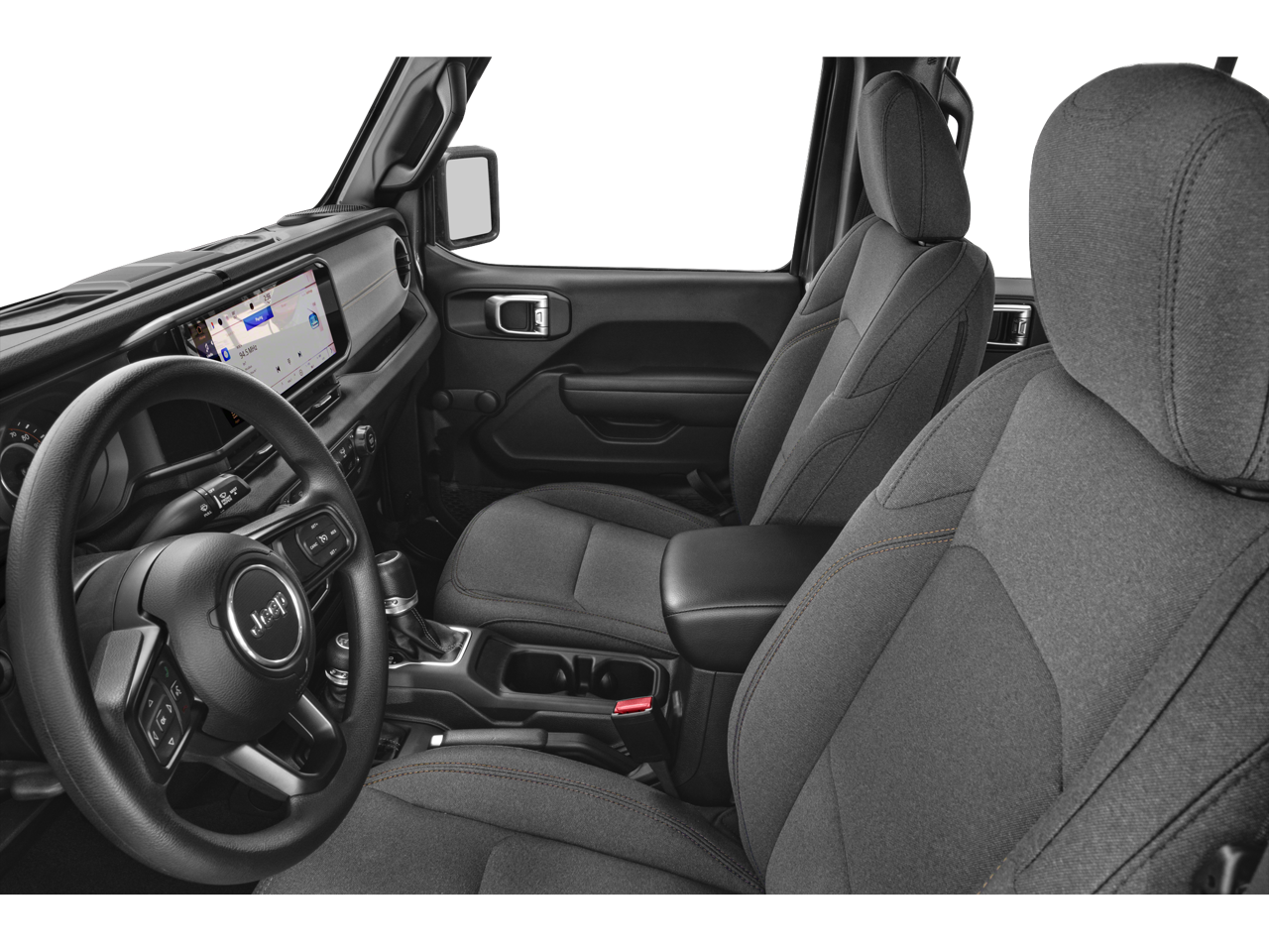 12.3 Touchscreen Display, 4-Wheel Disc Brakes, 4.10 Rear Axle Ratio, 8 Speakers, 97 MPH Vehicle Max Speed Calibration, ABS brakes, Air Conditioning, Alloy wheels, AM/FM radio: SiriusXM, Apple CarPlay, Apple CarPlay/Android Auto, Automatic temperature control, Aux Battery, Black 3-Piece Hard Top, Brake assist, Cloth Low-Back Bucket Seats, Compass, Connectivity - US/Canada, Delay-off headlights, Disassociated Touchscreen Display, Driver door bin, Driver vanity mirror, Dual front impact airbags, Dual front side impact airbags, Electronic Stability Control, Emergency communication system: Jeep Connect, Front anti-roll bar, Front Bucket Seats, Front Center Armrest w/Storage, Front dual zone A/C, Front fog lights, Front License Plate Bracket, Front reading lights, Fully automatic headlights, Google Android Auto, Heated door mirrors, Illuminated entry, Integrated Center Stack Radio, Integrated roll-over protection, Integrated Voice Command w/Bluetooth®, Low tire pressure warning, No Soft Top, Non-Lock Fuel Cap w/o Discriminator, Occupant sensing airbag, Outside temperature display, Overhead airbag, Panic alarm, ParkView Rear Back-Up Camera, Passenger door bin, Passenger vanity mirror, Performance Suspension, Power door mirrors, Power steering, Power windows, Quick Order Package 24R Rubicon, Radio data system, Radio: Uconnect 5 w/12.3 Display, Rear anti-roll bar, Rear reading lights, Remote keyless entry, Security system, Speed control, Split folding rear seat, Steering wheel mounted audio controls, Stop-Start Dual Battery System, Tachometer, Telescoping steering wheel, Tilt steering wheel, Traction control, Trip computer, Variably intermittent wipers, Voltmeter, Wheels: 17 x 7.5 Machined/Painted Black.
