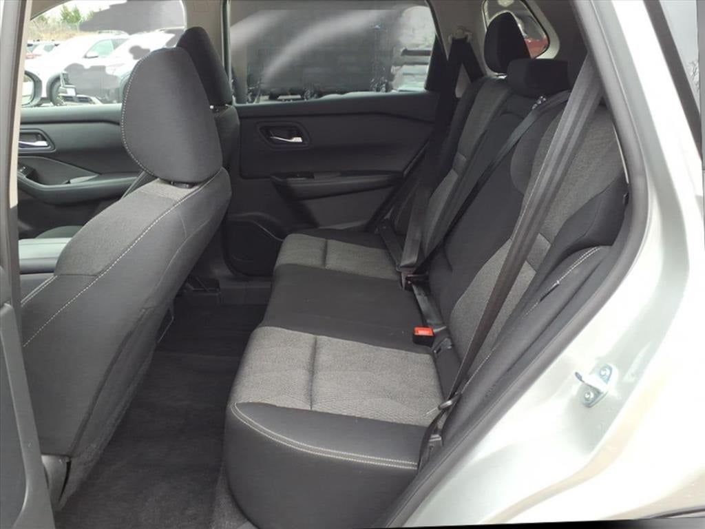 Inside, the Rogue SV typically comes with a charcoal interior that complements the silver exterior. Seating for five is comfortable and supportive, with thoughtful touches like dual-zone automatic climate control and a user-friendly layout. Cargo space is generous for the class, and rear seats fold flat to expand versatility for gear, luggage, or larger items, making the Rogue well-suited for daily errands, weekend trips, or family adventures.